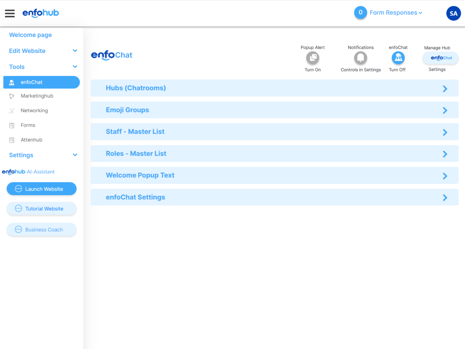 Even if you embed enfoChat into your own website, you still get a full enfōhub dashboard.
